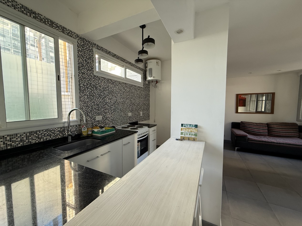 Cuenta con amplio living–comedor diario, muy soleado y con excelente ventilación natural. Cocina equipada con artefacto eléctrico de 4 hornallas con horno y termotanque eléctrico.