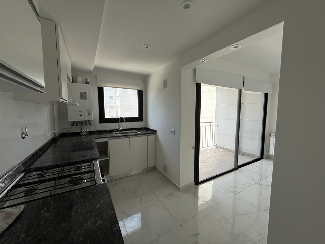 • Cocina semiintegrada con barra desayunadora, amoblamientos a medida, ventilación natural, espacio para lavarropas y cocina a gas.